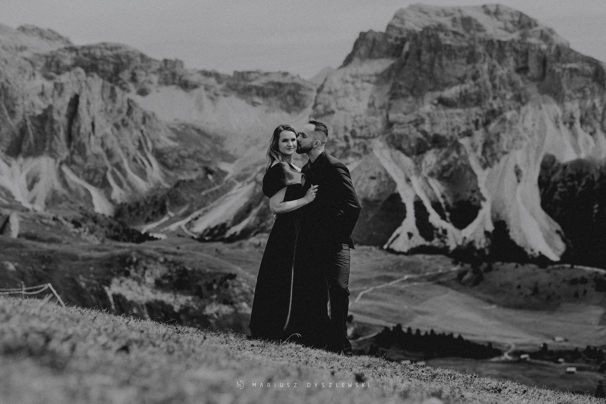 Na sesję poślubną z Kasią i Mateuszem wybraliśmy się do Włoch. Sesja ślubna we Włoszech to był świetny pomysł. Nasza podróż zresztą, a co za tym idzie – również miejsca do zdjęć, były zróżnicowane. Najpierw zrobiliśmy sesję w Dolomitach. Było jak w bajce! Góry, światło, cisza i my. Górskie ściany i zielone łąki sprawdziły się świetnie do wykonania sesji poślubnej.